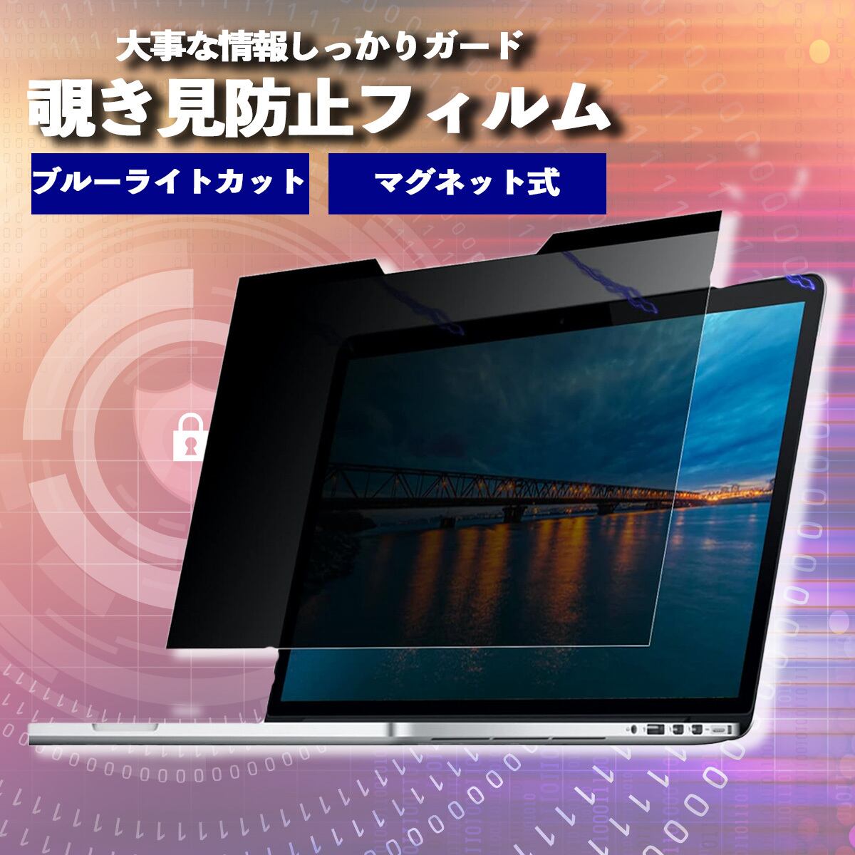 覗見防止フィルター マグネット式 16:9 PC 13.3インチ パソコン ブルーライトカット プライバシー 保護 フィルム 覗き見防止